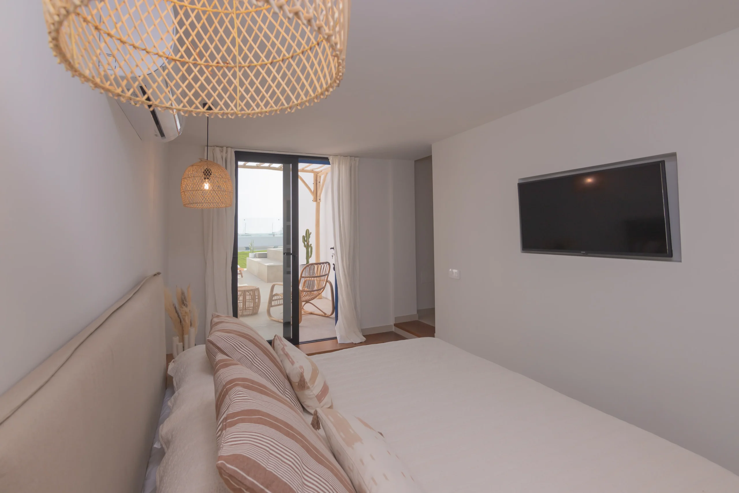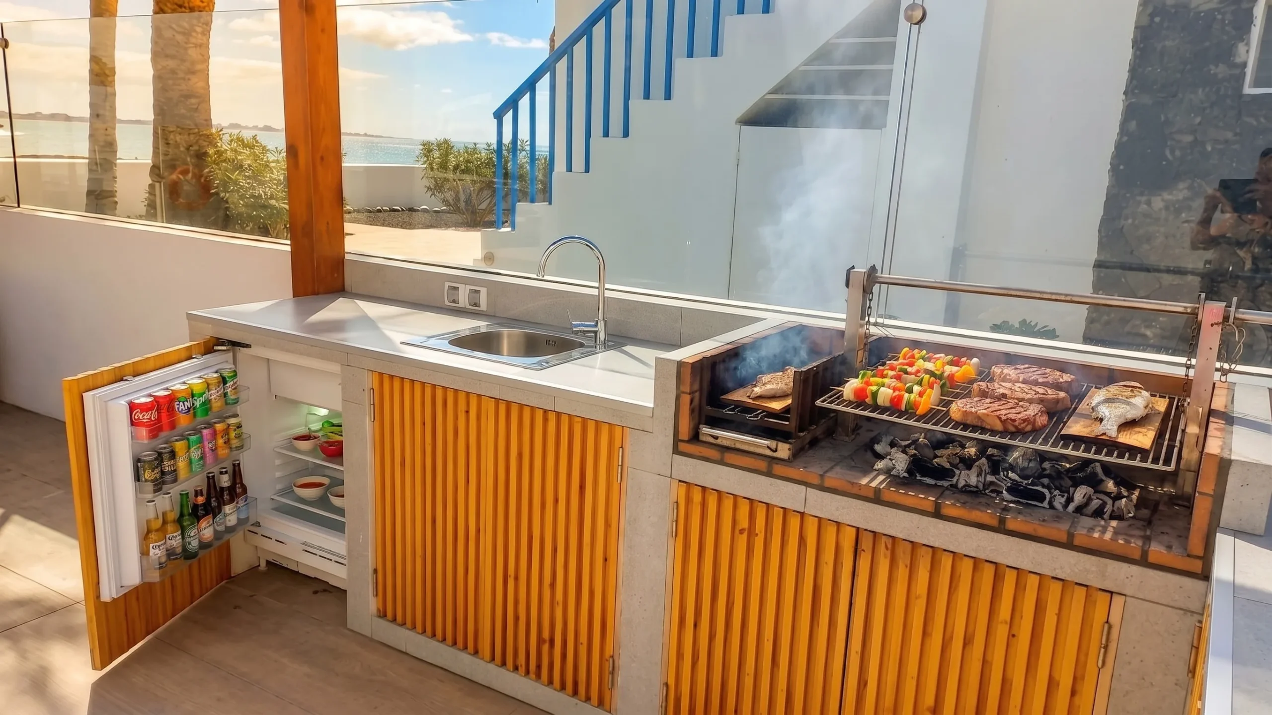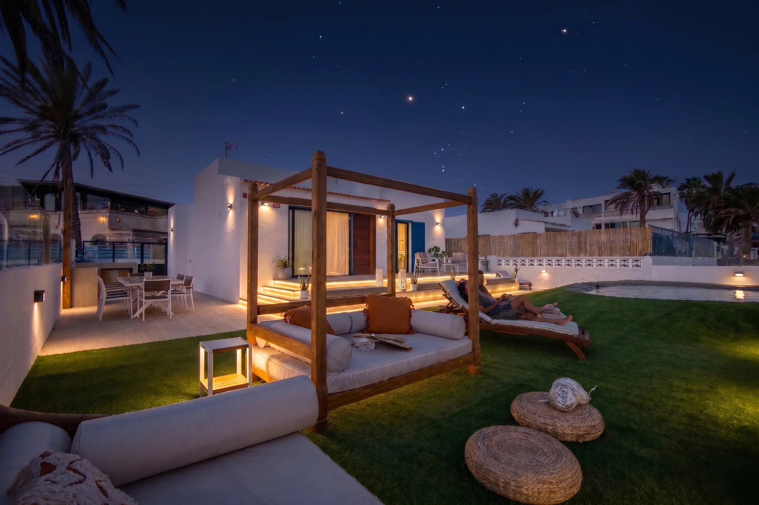 Situata nel cuore della vivace Corralejo, questa esclusiva villa fronte mare offre un’esperienza unica per un massimo di 6 persone. Su un terreno di 470 m², Villa Edén dispone di un’area esterna privata con parcheggio e punto di ricarica per auto elettriche, zona pranzo all’aperto accanto al barbecue, lavandino, frigorifero, bar tiki e un letto balinese perfetto per rilassarsi. Il gioiello dell’esterno è la piscina in pietra naturale con acqua salata, che conserva il calore del sole ed è situata proprio accanto all’accesso diretto alla spiaggia.