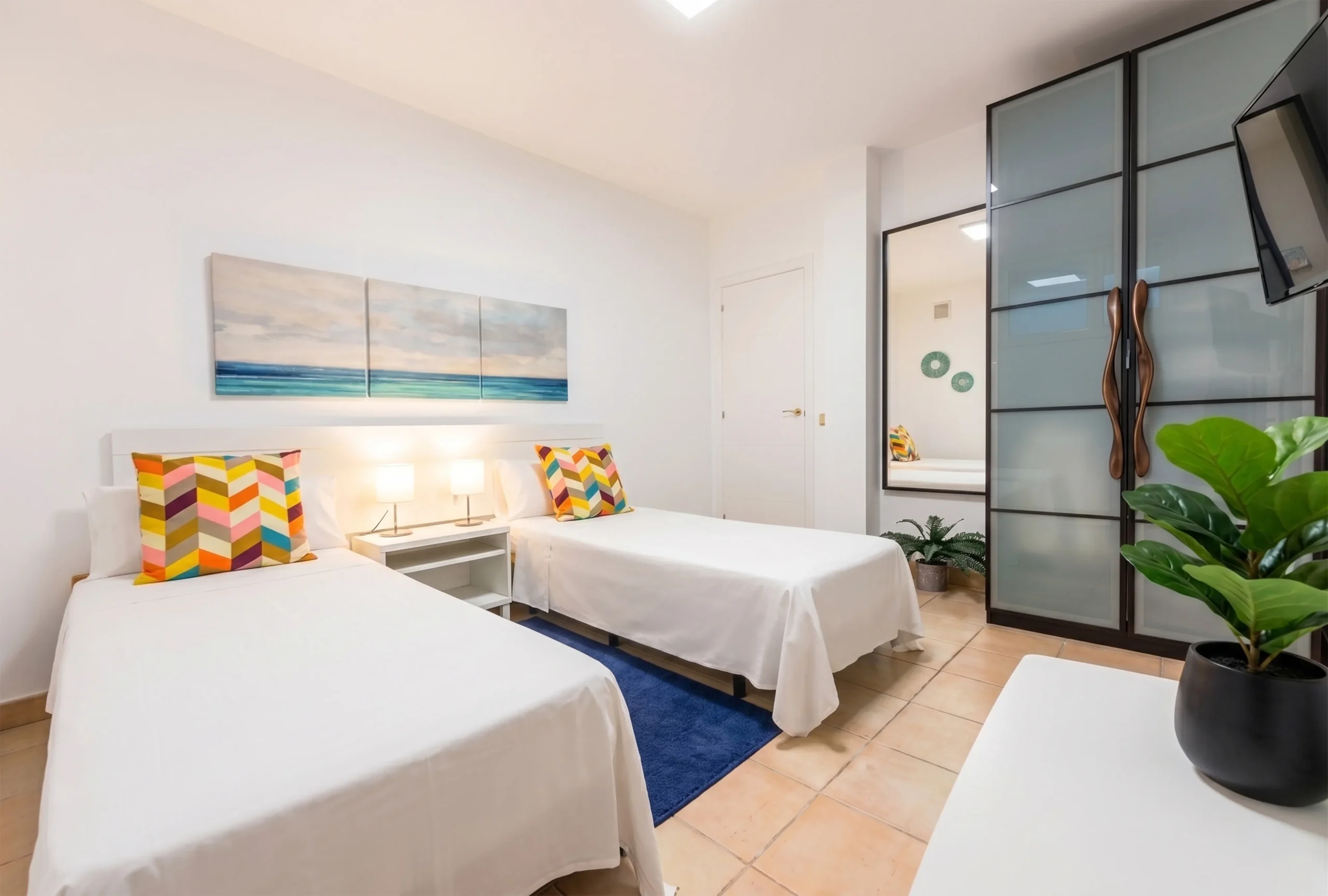 Villa Oasis Beachfront Corralejo è il rifugio perfetto per le tue vacanze a Fuerteventura. Dispone di un totale di 3 camere da letto, 2 bagni e un servizio, tutti completamente attrezzati. Una delle camere da letto ha un letto matrimoniale, cabina armadio e bagno en suite, mentre le altre due hanno letti singoli ciascuna.